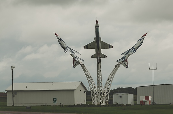 На территории аэропорта установлена скульптурная композиция из трёх списанных учебно-тренировочных самолётов T-38A Talon ВВС США.