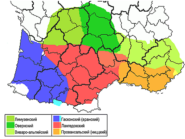 Овернский диалектный ареал включает три группы говоров[6]: