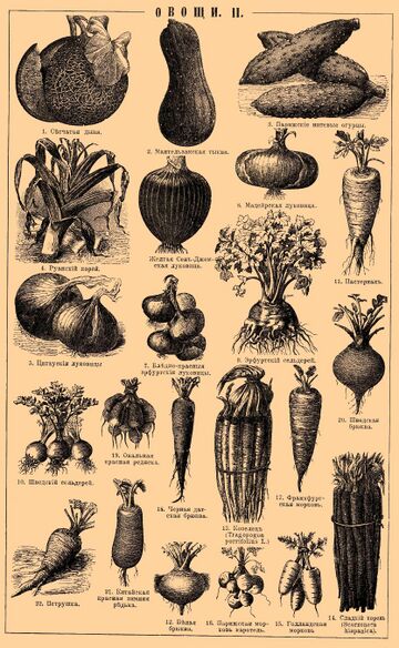 Овощи. Иллюстрация из Энциклопедического словаря Брокгауза и Ефрона