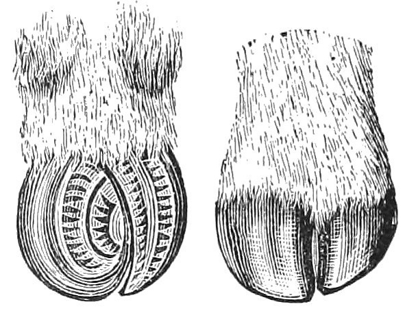 У овцебыков имеется горб-загривок в районе плеча, который переходит в узкую заднюю часть[16]. Ноги овцебыков небольшие и коренастые. При измерении по кривой задние ноги намного длиннее передних[30]. Копыта у овцебыков большие округлые, приспособленные для передвижения по снегу и скалам[16]. Передние копыта заметно шире задних, что позволяет эффективно «копытить» (раскапывать) корм под снегом[31][32]. Боковые копытца маленькие, при ходьбе не оставляют следов на грунте или снеге[32].