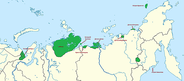 К 2000 году были созданы свободно живущие популяции овцебыков на полуострове Терпяй-Тумус, в дельте Лены, на острове Большой Бегичев в Хатангском заливе и в низовьях Индигирки в районе посёлка Чокурдах. Поголовье овцебыков в республике на 2012 год превысило численность в одну тысячу[93].