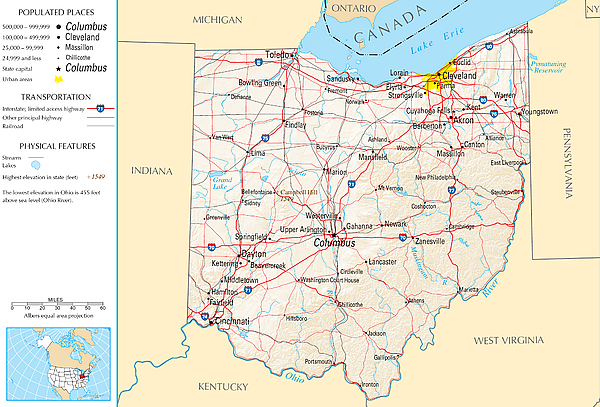 Географическое положение штата Огайо оказалось очень удобным для экономического роста и расширения. Большая часть штата расположена на равнинной местности.