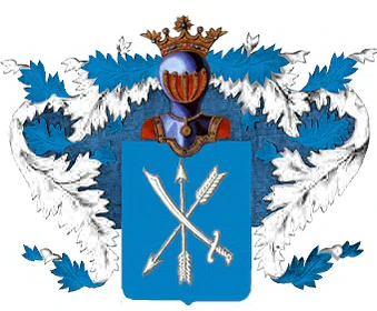 Описание герба: Выдержка из Общего гербовника В голубом поле изображены крестообразно положенные две серебряные стрелы и сабля, из коих сабля и средняя стрела изображены острыми концами вверх. Щит увенчан обыкновенным дворянским шлемом с двворянской же на нём короною. Намёт на щите серебряный подложенный голубым. |