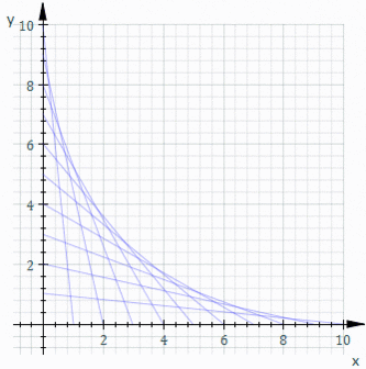 Кривая называется огиба́ющей семейства кривых , зависящих от параметра , если она в каждой своей точке касается хотя бы одной кривой семейства и каждым своим отрезком касается бесконечного множества этих кривых.