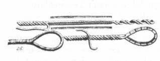 - Простой огон — на конец троса накладывают временную марку, после чего его распускают на пряди, на концах которых также ставят отметки. Затем его укладывают в виде петли необходимых размеров, а каждую из оставшихся прядей пробивают под соответствующую прядь нераспускавшейся части троса[6]
