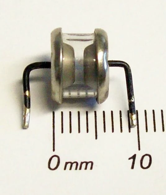 Газоразрядные трубки содержат замкнутый газ, который начинает проводить ток при достижении определённого напряжения. Способны выдерживать значительные токи, но требуют времени (до десятков наносекунд) на ионизацию газа, вследствие чего часть импульса всё же проходит к нагрузке. Требуют осторожности в схемах с постоянным током. Благодаря малой ёмкости их применяют на высокочастотных линиях связи[21].