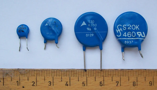 Основной элемент дешёвых ограничителей переменного тока. Варистор изготавливают из прессованного оксида цинка; он начинает проводить при превышении рабочей пороговой величины[20]. Варисторы склонны к деградации при частых срабатываниях, после чего их порог падает вплоть до сетевого напряжения, что грозит возгоранием. Современные устройства разрывают цепь при перегреве варистора термопредохранителем и сигнализируют о выходе из строя[15].