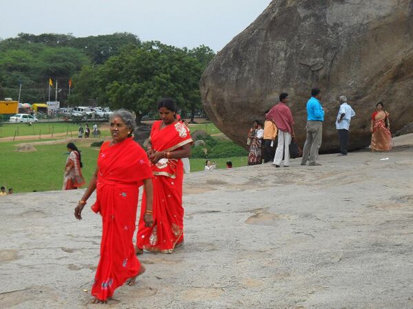 Сари — женская одежда на Индийском субконтиненте[22]. Сари — это длинное полотно несшитой ткани, длина которой может быть 4-9 м, что позволяет окутывать всё тело в любом стиле. Существуют различные традиционные типы сари: самбалпури-сари (sambalpuri saree) из Восточной Индии, канчипурам из Южной Индии, пайтхани (paithani) из Западной Индии и банараси-сари (banarasi saris) из Северной Индии[23]. Общим для всех сари стилем является обмотка вокруг талии, после чего одним концом покрывается плечо[22]. Сари обычно носится поверх нижней юбки. Кофточка может быть с низким вырезом или быть форме блузки с бретельками. Существует много сари с большим количеством украшений, такие как вышивка и зеркальца. Такие сари надевают по особому случаю. Женщины, служащие в вооружённых силах Индии, носят униформу «сари», где рубашку с короткими рукавами заворачивают у талии. Девочки-подростки носят полусари, которое состоит из ланги, чоли и палантина, окутывающий подобно сари. Взрослые женщины обычно носят полное сари.