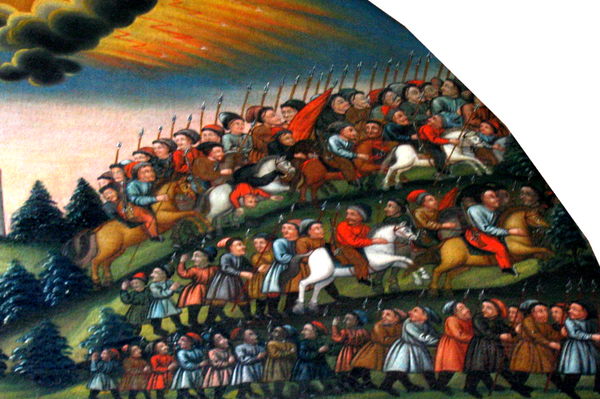 Оригинальный текст (укр.)[показатьскрыть]Хіба лише яким там старшим однострої кольорові від короля дарують. Ці nоношені червоні покрови вершники лише носять