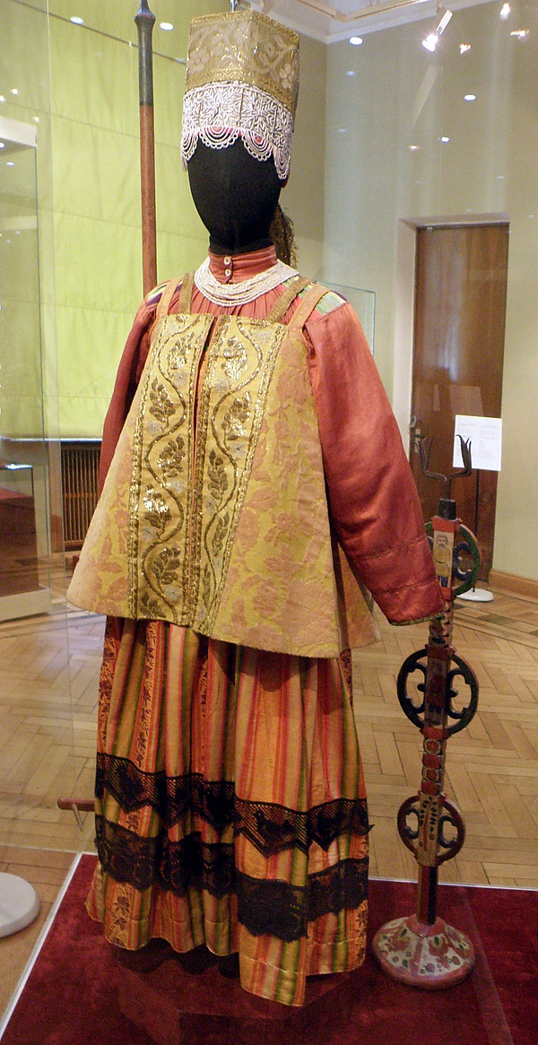 Также в конце XIX-начале XX века выходили из употребления более открытые косоклинные сарафаны, т.н. штофники. Праздничные косоклинные штофники, как уже ясно из названия, шили из красного штофа разных оттенков, от брусничного до малинового, и украшали спереди широким галуном и рядом шарообразных серебряных или позолоченных пуговиц. В 1920-е годы многие штофники были перешиты в прямые сарафаны и юбки.