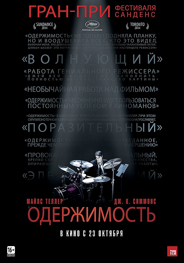 В центре сюжета картины конфликт между исполнителем на ударных инструментах Эндрю Ниманом и руководителем джазового коллектива Терренсом Флетчером, известным своим безжалостным нравом. Главные роли исполнили Майлз Теллер и Дж. К. Симмонс, удостоенные за свои актёрские работы множества наград и номинаций. Подавляющим большинством представителей кинопрессы «Одержимость» признана одним из 10 лучших фильмов года. Фильм получил три премии «Оскар», три премии BAFTA, премию Гильдии киноактёров США и «Золотой глобус».