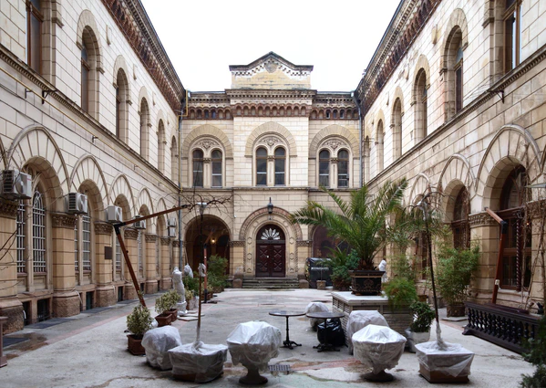 Для здания биржи, возведённого в стиле венецианского неоренессанса, был взят за основу Палаццо Дукале в Венеции.[1]:25