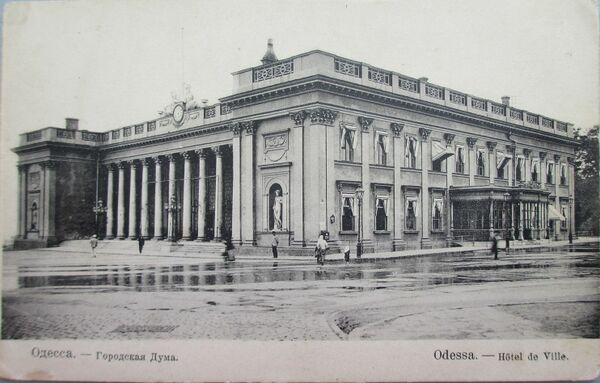 В 1899 г. биржа была перемещена в новое здание (теперь здание Одесской государственной филармонии). В здании биржи расположилась городская дума. Перед зданием находится памятник русскому поэту Александру Пушкину, прожившему в Одессе тринадцать месяцев.