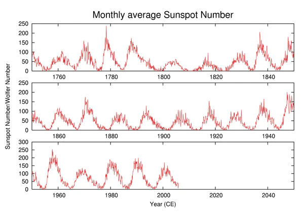 В начале XVII века, с изобретением телескопа, астрономы начали систематические наблюдения и исследования солнечных пятен, однако 11-летняя цикличность ускользнула от их внимания. Частично это может объясняться тем, что солнечная активность была сравнительно низка даже в начале XVII века, а к его середине начался минимум Маундера (1645—1715) и количество солнечных пятен на Солнце на многие десятилетия снизилось.