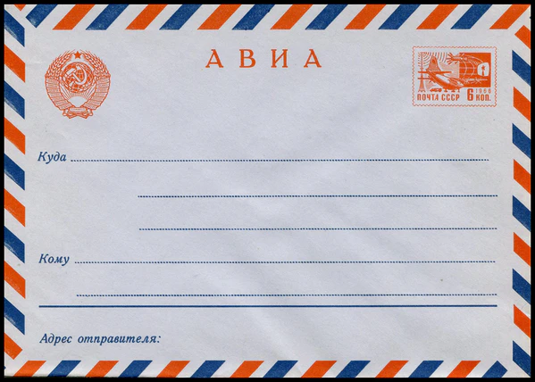 | Простое закрытое письмо авиа | 6 коп. | Простое закрытое письмо авиа | 16 коп. | |||