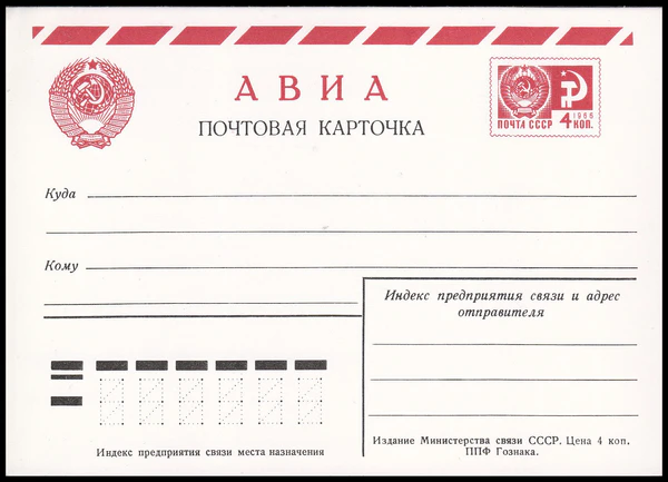 | Заказная почтовая карточка авиа | 10 коп. | Заказная почтовая карточка авиа | 26 коп. | (—) | ||
