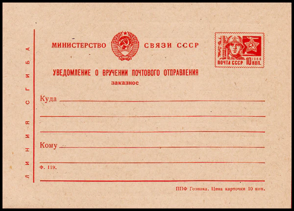 | Заказная почтовая карточка | 10 коп. | Заказная почтовая карточка | 10 коп. | |||
