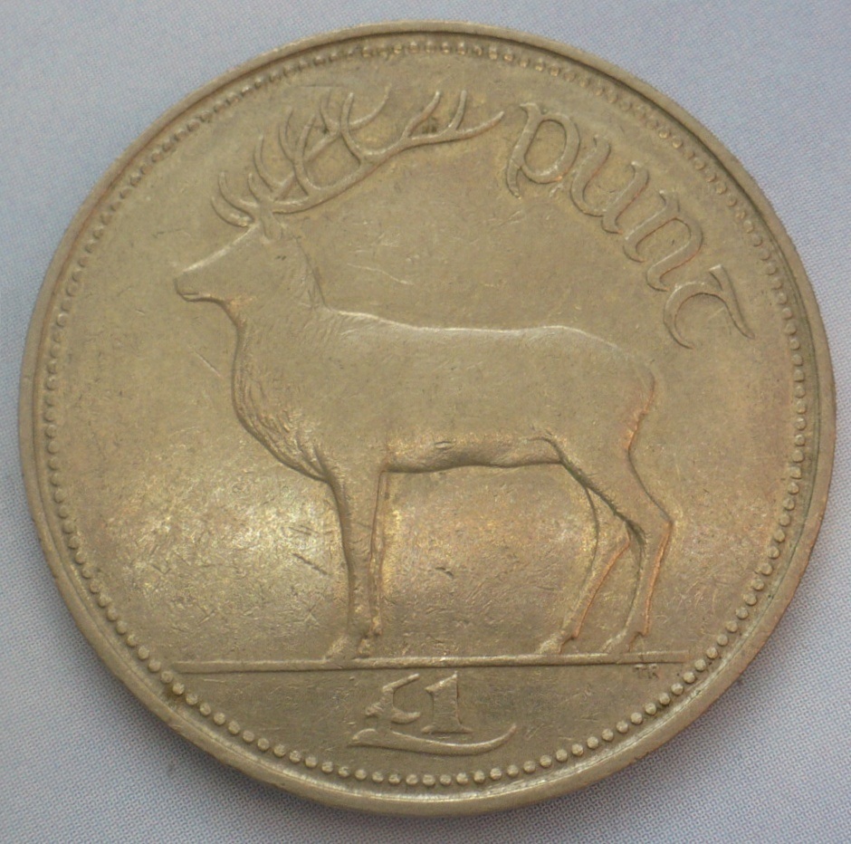 Монета один фунт была введена 20 июня 1990 года. Дизайн монеты разработали Том Риан (Tom Ryan) и фотограф Шон Риан (Sean Ryan)[1]. На монете изображен благородный олень из Национального парка Килларни.