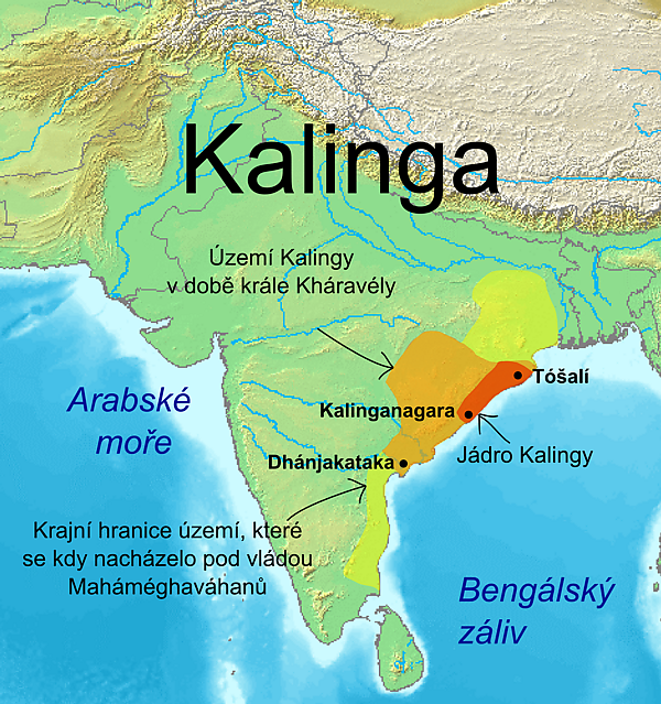 Именно этот штат являет собой ядро древнего государства Калинга — одного из очень немногих регионов Индии, сохранивших независимость во время завоеваний Чандрагупты Маурья. О несколько более раннем времени можно узнать из надписи Пещеры Слонов, которая упоминает о казни царя Калинги по имени Нандараджа[3], что намекает на представителя династии Нанда, воевавшей с Александром Македонским, о чём детальнее сообщают античные источники (в частности, Индика[4] Мегасфена). Что подразумевает потенциальную аннексию[5] либо правителя по династическому браку. В любом случае, состоянием на вторую четверть III века до н. э. это была самостоятельная держава.