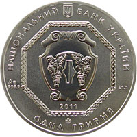 Монета 1 гривна из серебра — Ag 999,9, масса драгоценного металла 31,1 г, диаметр 38,6 мм, толщина монеты с гуртом 3,0 мм; гурт монеты рифлёный; качество чеканки анциркулейтед, год чеканки 2011, тираж 10 000 шт.