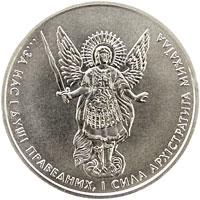 На реверсе монет изображён Архангел Михаил, который является одним из самых почитаемых библейских персонажей, победителем зла, покровителем воинов, сражающихся за правое дело. По кругу размещена надпись укр. …ЗА НАС І ДУШІ ПРАВЕДНИХ, І СИЛА АРХІСТРАТИГА МИХАЇЛА (строки из поэмы Т. Г. Шевченко «Гайдамаки»).[12]