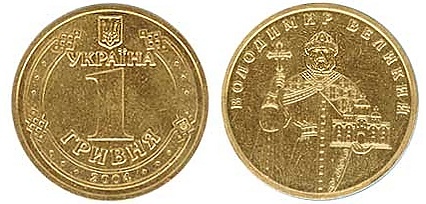 С 2004 года вместо монеты образца 1995 года выпускается оборотная монета номиналом 1 гривна с изображением на реверсе Владимира Великого (аналогичный портрет размещён и на банкнотах номиналом 1 гривна образца 1994—2001 годов). Во времена правления князя Владимира завершилось формирование древнерусского государства и введено христианство как государственная религия.