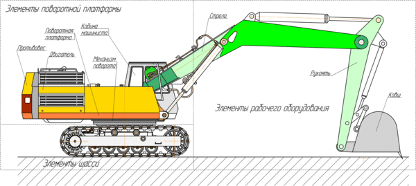 Одноковшовые экскаваторы классифицируются по типу шасси, типу привода, типу рабочего оборудования, возможности поворота рабочего оборудования относительно опорной поверхности.