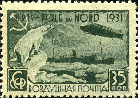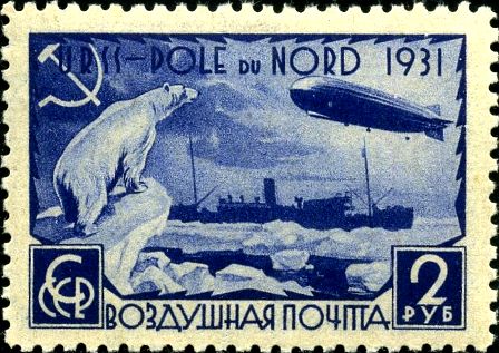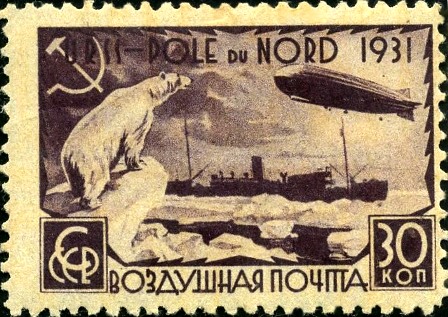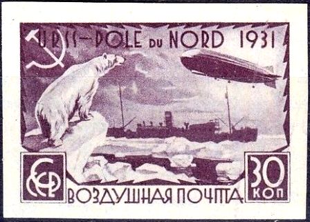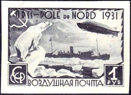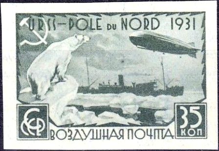 Здесь 8 марок одного рисунка, отличающиеся отсутствием и наличием зубцов, а также цветом и номиналом. На марках изображены Белый медведь, «Малыгин» и «Граф Цеппелин». Первый номер серии ЦФА 379, дата выпуска марки с первым номером серии 1931-07-18.