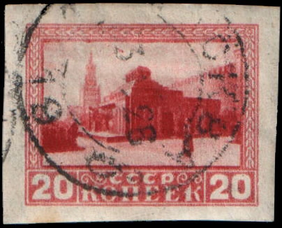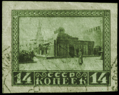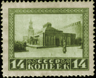 Однолетняя серия почтовых марок СССР с разными датами выпуска с изображением мавзолея В. И. Ленина — второго варианта деревянной постройки архитектора В. В. Щусева, открытого 1 августа 1924 года[19]. Эта серия была выпущена в 1925 году (21 января и в марте).