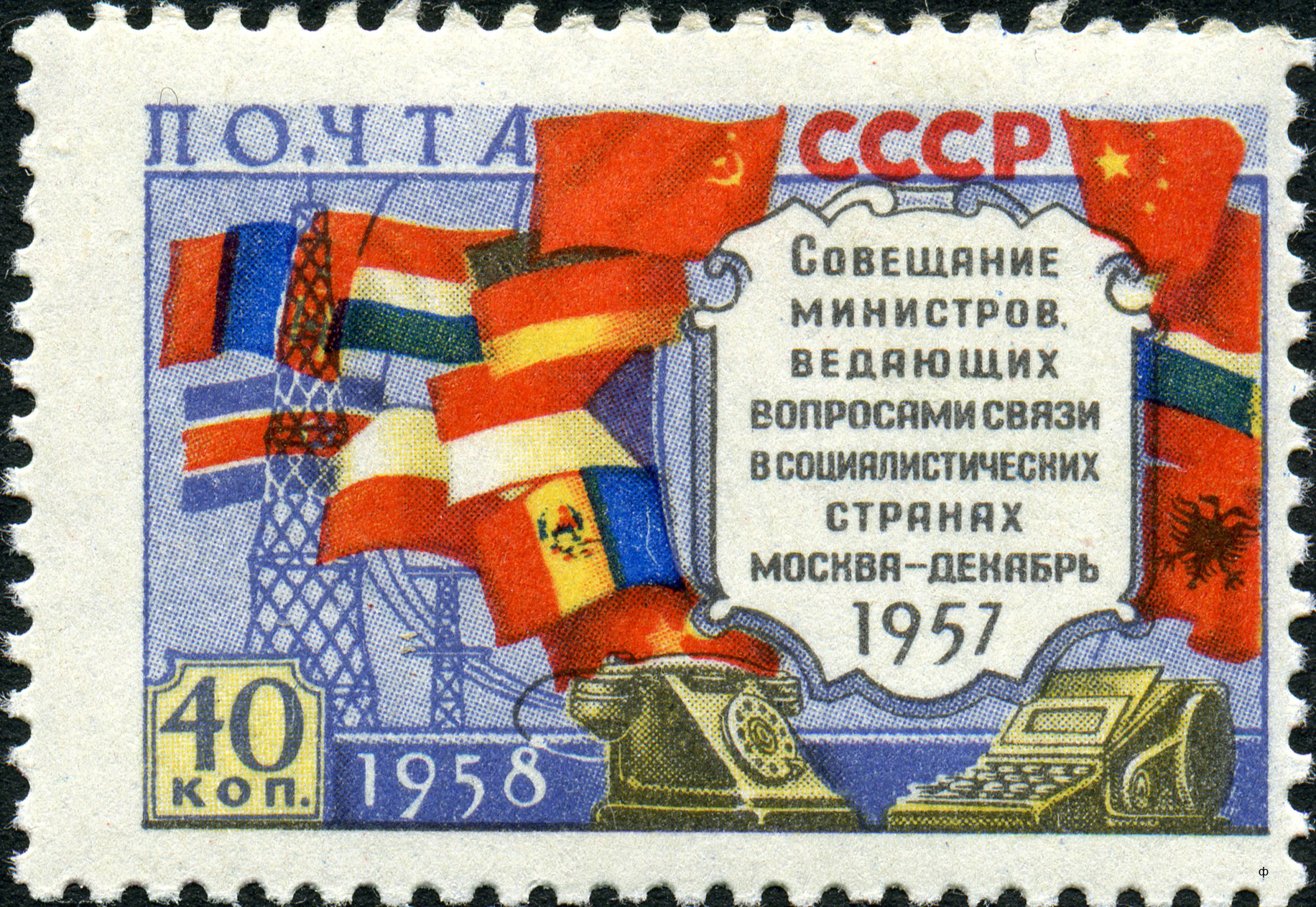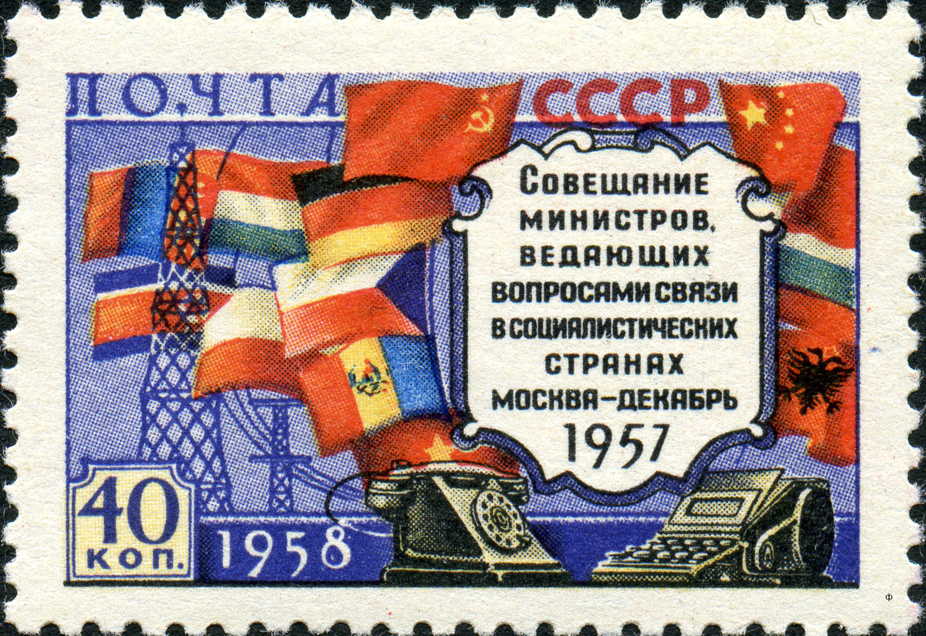 - «#Совещание министров связи социалистических стран в Москве (1958)», содержащей марку с ошибкой и марку без ошибки;