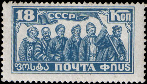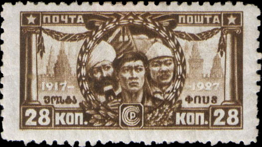 | 7 | 1927-11-01Mi | 302 | 208 | 381 | 334 | 507 | 391 | 28к | Трудящиеся разных рас на фоне Кремля | |