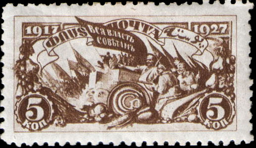 Однолетняя серия почтовых марок СССР с разными датами выпуска посвящена 10-летию Великой Октябрьской социалистической революции. Эта серия была выпущена в 1927 году (в октябре и ноябре).