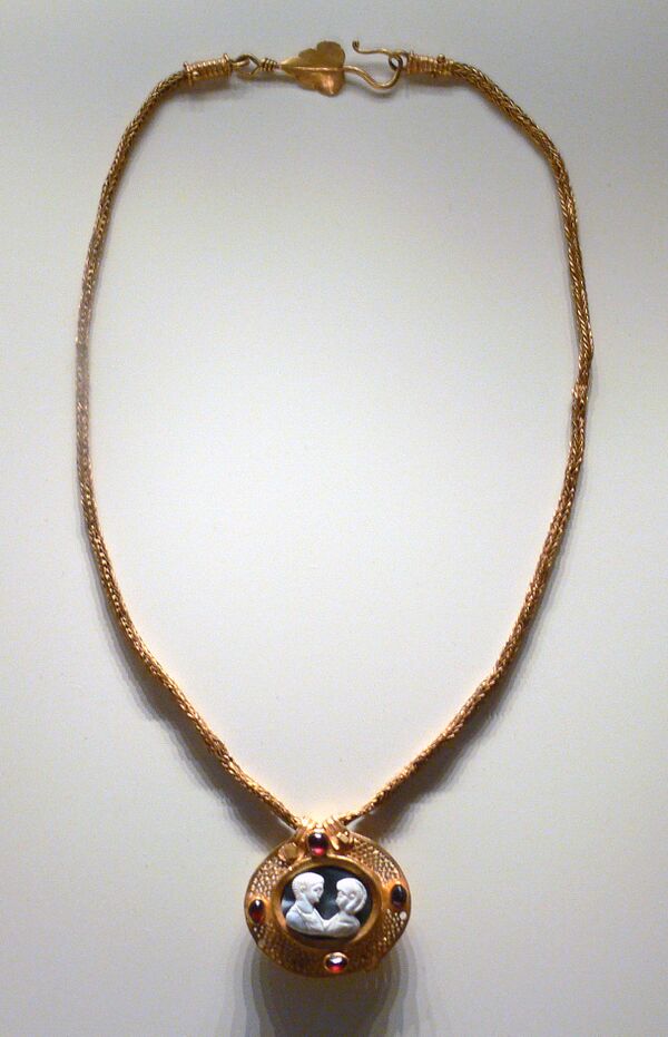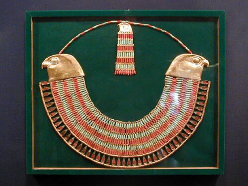 В Древнем Египте знатные мужчины и женщины носили широкие ожерелья-оплечья или пекторали из золота и цветных бусин. Ожерелье спереди закрывало зону ключиц, сзади связывалось завязками и уравновешивалось подвеском, свисающим со спины.