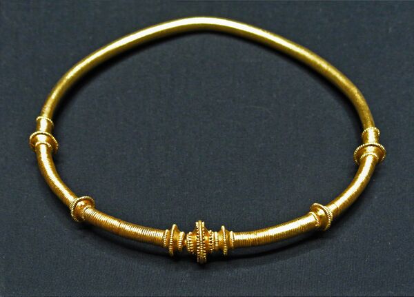 - Шейная гривна — историческое украшение в виде золотого, серебряного или медного обруча, носимое на шее. Появилось в бронзовом веке[4]; известно у многих народов, в том числе славян, кельтов (кельтский аналог гривны называется торквес или торк), скифов[5][6], сарматов, персов и других.