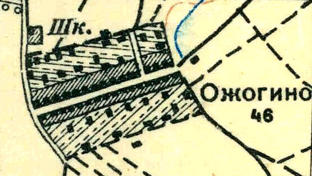 Согласно карте Ф. Ф. Шуберта 1844 года, деревня называлась Ожогина и также насчитывала 33 двора[6].