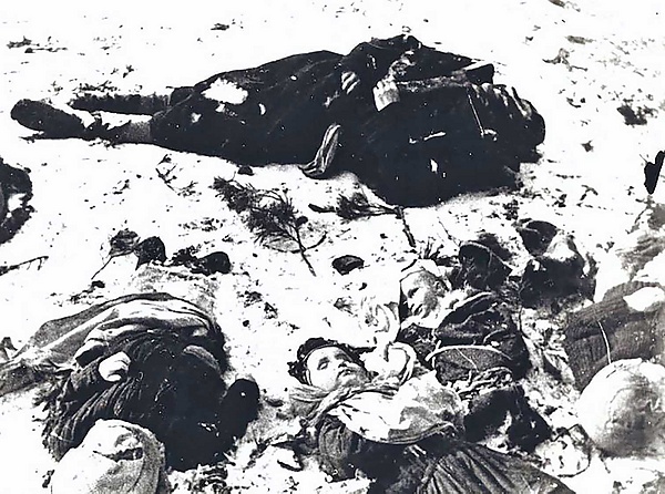 В одном лагере находились два подразделения, южное и северо-восточное. На протяжении 10 дней нам давали один раз продукты и то дохлую конину, гнилую капусту и отравленный хлеб. Сам лагерь находился в большом болоте, и эвакуированное население все время находилось в грязи и воде под открытым небом, и много детей и взрослых умирали. Тут же валялись за изгородью неубранные трупы, гнили и портили воздух, который здесь был очень плохой. И 90–95% оставшегося населения страдает ревматизмом. В лагере была ежедневно большая смертность, которая составляет не менее 65%.