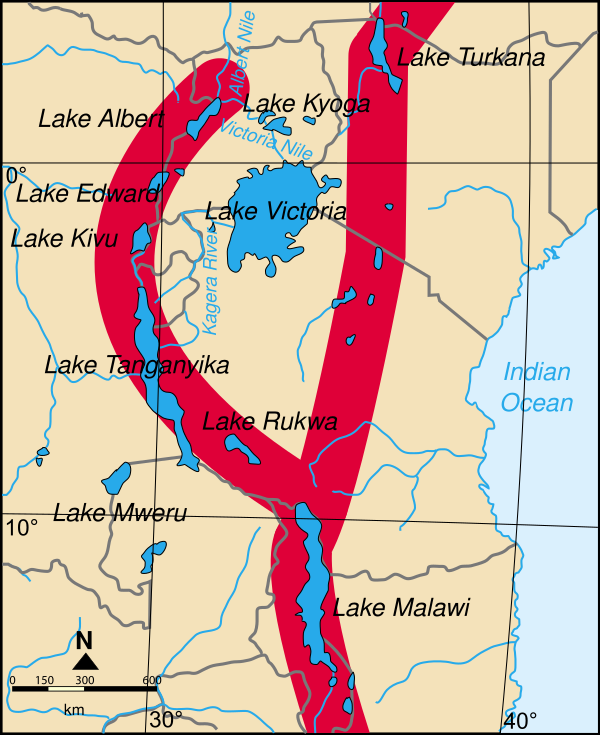 | Руква | ~ 5760 км2 (2220 кв. миль) | Руква — бессточное озеро в долине Руква на юго-западе Танзании. Это содовое озеро, которое лежит на высоте примерно 800 метров (2600 футов) вдоль Восточно-Африканского разлома. | [6] | ||