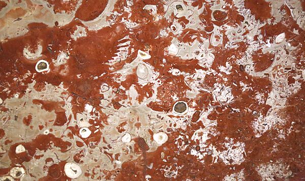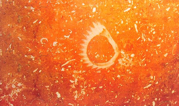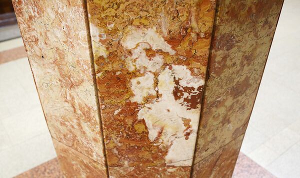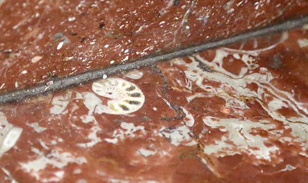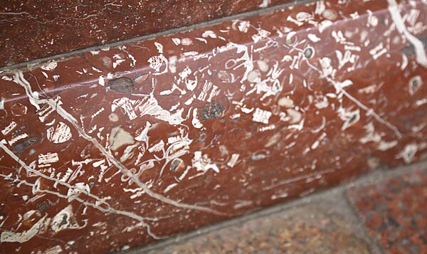 В колоннах этой станции окаменелости встречаются часто. Как и многие, она облицована красным мраморизованным известняком, в котором, помимо наутилусов, кораллов и губок, расположились гастроподы и морские лилии (иглокожие). Гастроподы (брюхоногие моллюски) — это огромный класс, к которому относятся как вымершие виды, так и современные.