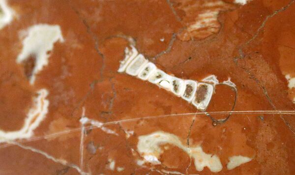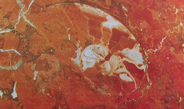 В колоннах из красного мраморизованного известняка можно увидеть несколько видов окаменелостей, в числе которых гастроподы, а также небольшие аммониты и губки. Губки существуют на Земле более 650 миллионов лет. Описано около 8 000 современных видов, которые населяют солёные и пресные водоёмы, но точное их число неизвестно. В древности губки образовывали рифы, но в метро они попадаются в основном поодиночке. Их также много на станциях «Первомайская», «Арбатская», «Каширская», «Фрунзенская» и «Электрозаводская». Редкие «обитатели» метрополитена — прямораковинные наутилоидеи. Они отличаются прямой, а не спиральной раковиной. Такая особенность не позволяла животным быстро перемещаться в воде, поэтому они вели придонный образ жизни. Подобные окаменелости не так часто встречаются в метро, на «Краснопресненской» можно увидеть самую крупную раковину — более 10 сантиметров в длину[4].