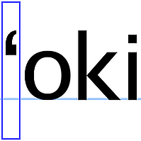 Окина визуально напоминает левую одинарную кавычку (‘) — маленький «6»-образный знак над базовой линией.