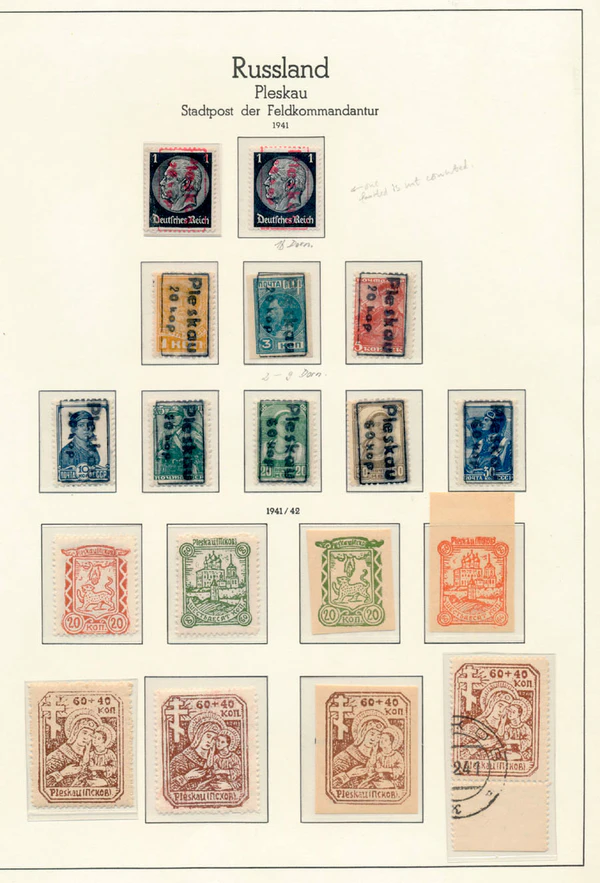 - ↑ Stamp Auction #73 By: Raritan Stamps Inc. Lot # 334 — Germany. Occupation Issues During The World War II Russland (Russia) — Pleskau (Pskov) (англ.). Stamp Auctions: Raritan Stamps Inc. Haifa, Israel: StampCircuit; Circuit Club (19 мая 2017). Дата обращения: 14 января 2018. Архивировано 14 января 2018 года.