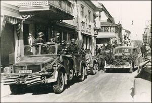 Впрочем, уже 2 августа оккупанты разрешили создать эстонскую вооружённую организацию «Корпус самообороны» (эст. Omakaitse, Омакайтсе). Отряды «Омакайтсе» были организованы по территориальному принципу. Они подчинялись оккупационным властям и участвовали в облавах на попавших в окружение советских военнослужащих, на подпольщиков и партизан, задерживали «подозрительных лиц», охраняли концлагеря, осуществляли массовые расстрелы мирных жителей и военнопленных[59][60][61].