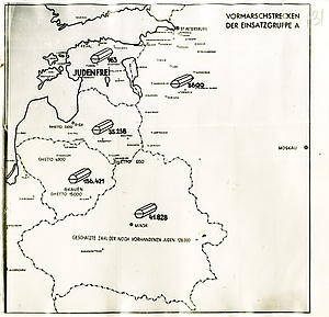 Все эстонские евреи — около 1 тысячи человек — были казнены на основании формально вынесенных приговоров[111][112]. Процессом уничтожения руководили сотрудники айнзатцкоманды 1а. Непосредственными исполнителями расстрелов часто становились эстонские коллаборационисты[113][114]. 31 января 1942 начальник полиции безопасности и СД Рейхскомиссариата «Остланд» Франц Вальтер Шталекер сообщил в Берлин, что «Эстония уже полностью очищена от евреев». Таким образом, Эстонская ССР стала первой оккупированной советской республикой, в которой были уничтожены все не успевшие эвакуироваться евреи[115].
