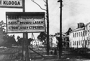 Нарвский концлагерь представлял собой сеть из семи лагерей, часть которых предназначалась для мирных жителей, а часть — для советских военнопленных. Нацисты сжигали трупы убитых или умерших в печах котельной при льнопрядильной фабрике или закапывали в братских могилах за деревней Поповка и за «Красными амбарами». По данным Чрезвычайной государственной комиссии, за три года в Нарве были убиты в общей сложности около 30 тысяч мирных жителей и военнопленных[121][122]. Концлагерь «Клоога» — один из крупнейших на оккупированной территории Эстонской ССР — был создан в сентябре 1943 года под эгидой организации Тодта. Узниками были в основном евреи, привезённые из гетто Каунаса, Вильнюса, концлагерей на оккупированной территории Латвийской ССР и Трансильвании[64]. Охрану лагеря осуществлял 287-й эстонский полицейский батальон. 19 сентября 1944 года на фоне наступления Красной армии все узники лагеря, а также специально привезённые из Таллина советские военнопленные и политические заключённые-эстонцы (в общей сложности — около 3 тысяч человек) были убиты[123][124][125].