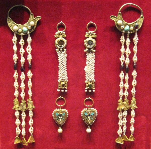 - Серьги, рясы, кулоны, жемчужные убрусы, зарукавья, ожерелья.