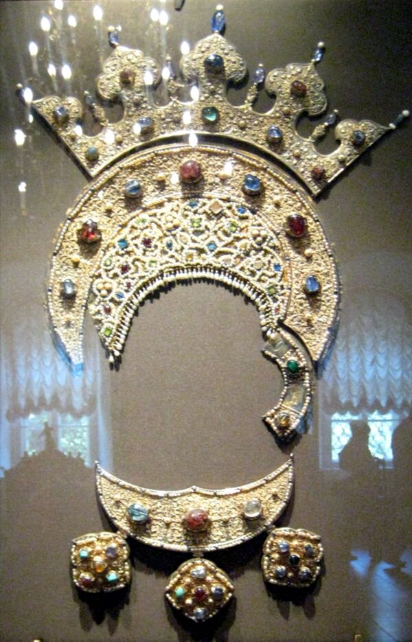 - Венец — накладной нимб, украшение вокруг головы. Венцы могут быть гладкими, прорезными, в технике ажурной или фоновой скани, с эмалями, драгоценными камнями или стразами в глухих кастах или лапках, а также с крупными зубцами — «городчатый венец».