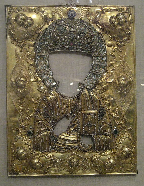 Как считается, в конце XVII века иконный оклад стал самостоятельным видом прикладного искусства, со своими особенностями конструкции и орнаментики[8].