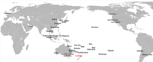 Прямые маршруты международных направлений из Аэропорта Окленд. Рейсы в Лондон выполняются с промежуточной посадкой в Лос-Анджелесе или Гонконге[9]