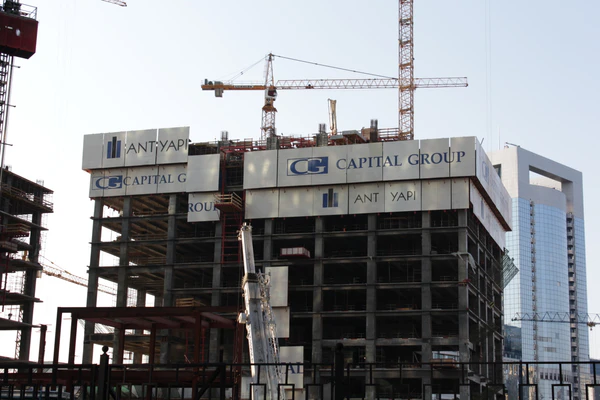 Северная башня — построено 13 этажей. Южная башня — построено 11 этажей.