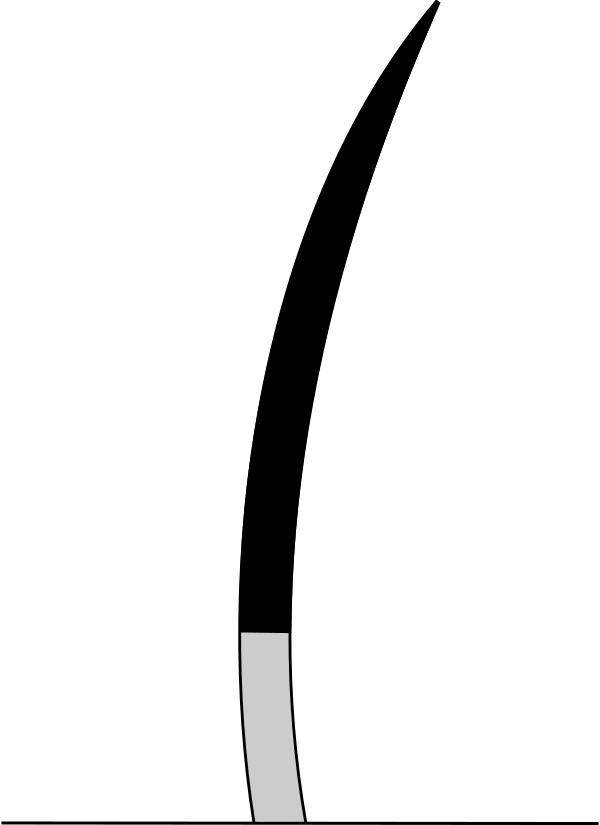- Затушёванный — 1/3 кончика волоса окрашена, остальная часть белая.